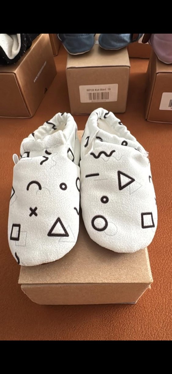 Beyaz Baskılı Erkek Bebek Ev Ayakkabısı no 19 caluu