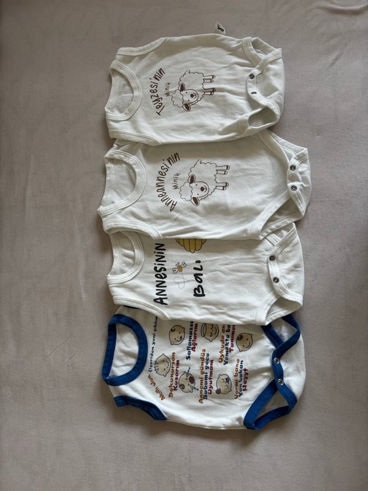 Beyaz Baskılı Erkek Bebek Kolsuz Body