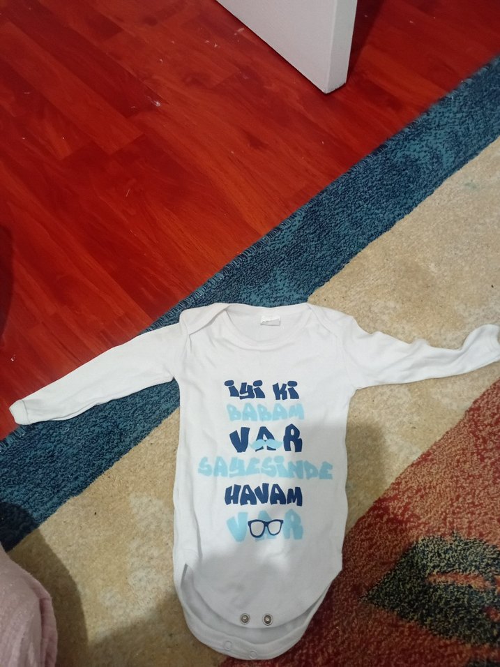 Uzun kollu beyaz bebek body, baskılı ve yuvarlak yakalıdır. Kolay giydirme için cırt cırtlı kapama ve yumuşak, sıcak kumaş kullanılmıştır. Önde 'HAVAM VAR' yazısı bulunmaktadır.