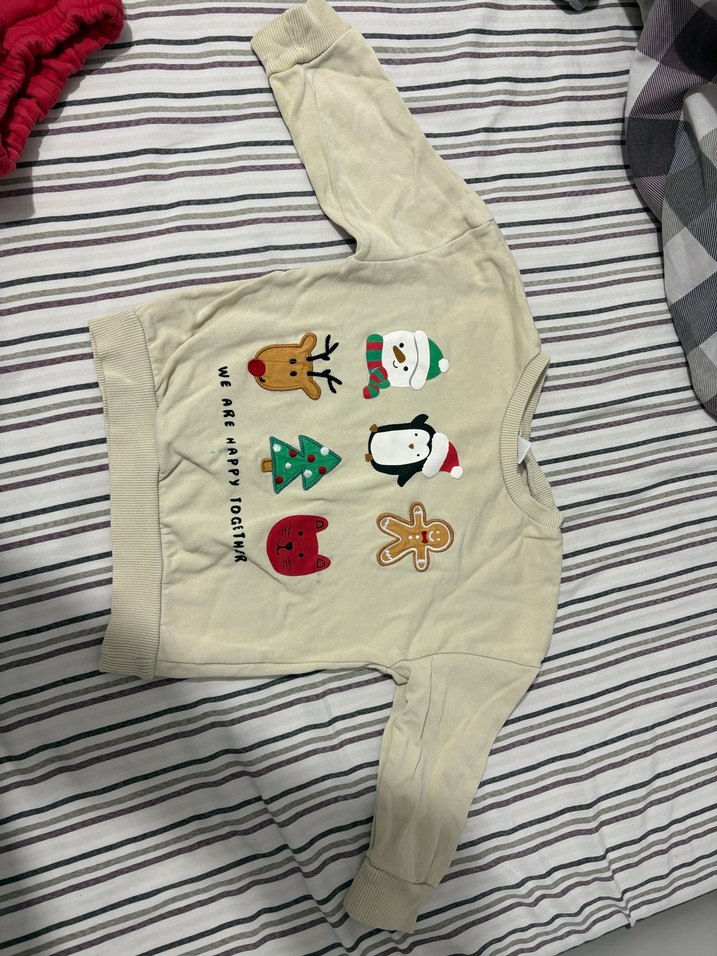 Uzun kollu, bisiklet yaka ve yumuşak örme kumaştan yapılmış beyaz sweatshirt. Önünde şık baskılar ve dar kesimiyle sokak stiline uygun.