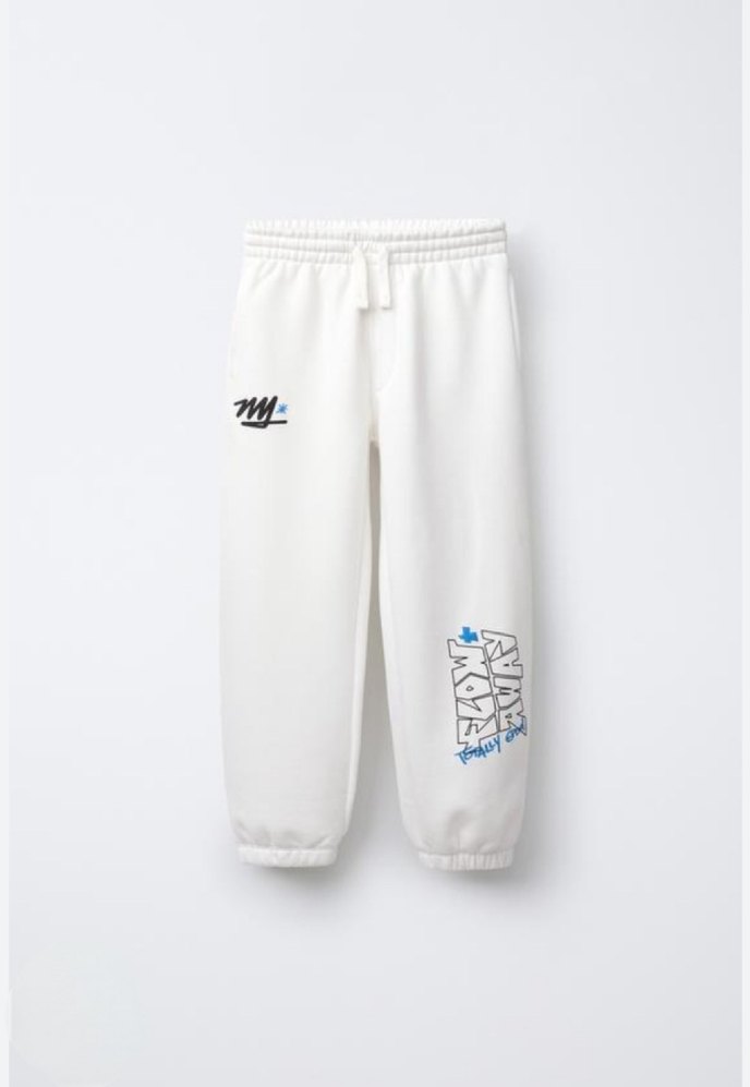 Yumuşak ve sıcak kumaştan, bol kesim beyaz baskılı erkek çocuk eşofman altı. Lastikli bel ve paça detaylarıyla rahat kullanım sağlar.
