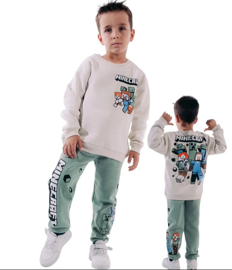 Beyaz Baskılı Erkek Çocuk Eşofman Takımı