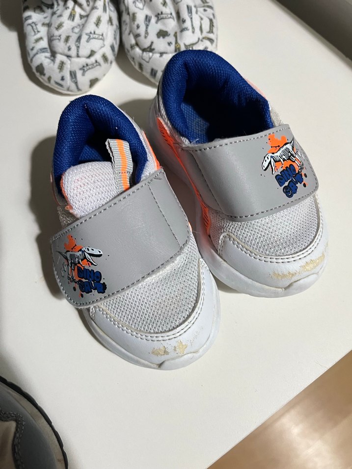 Beyaz renkli, baskılı desenli, cırt cırtlı ve kauçuk tabanlı erkek çocuk spor ayakkabısı, trend sokak stili için uygun.
