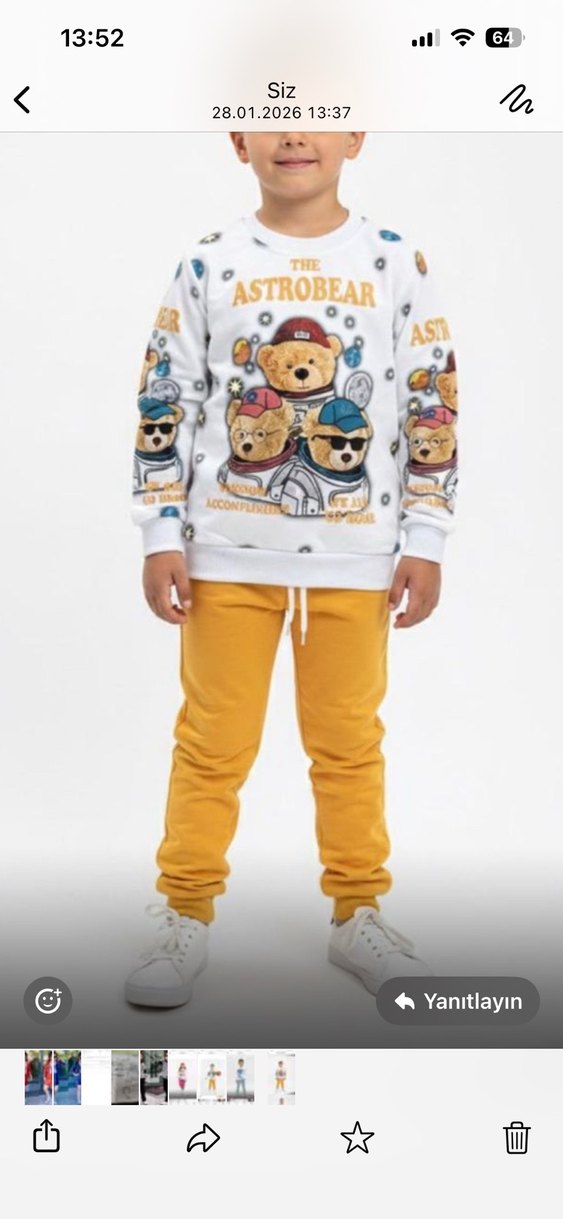 Beyaz renkli, baskılı astronot ayı desenli, bol kesim erkek çocuk sweatshirtü. Örgü yakalı ve yumuşak, sıcak tutan kumaştan üretilmiştir. 8 yaşa kadar mevcuttur