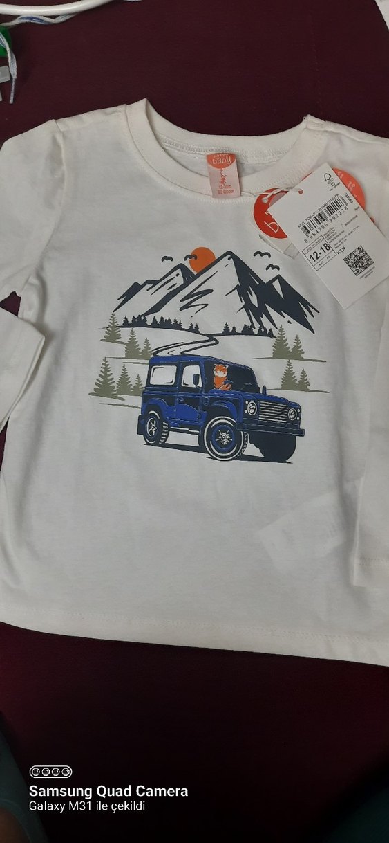 Beyaz renkli, uzun kollu, bisiklet yaka ve baskılı desenli erkek çocuk sweatshirtü. Yumuşak ve sıcak dokusu ile günlük şıklık sağlar.