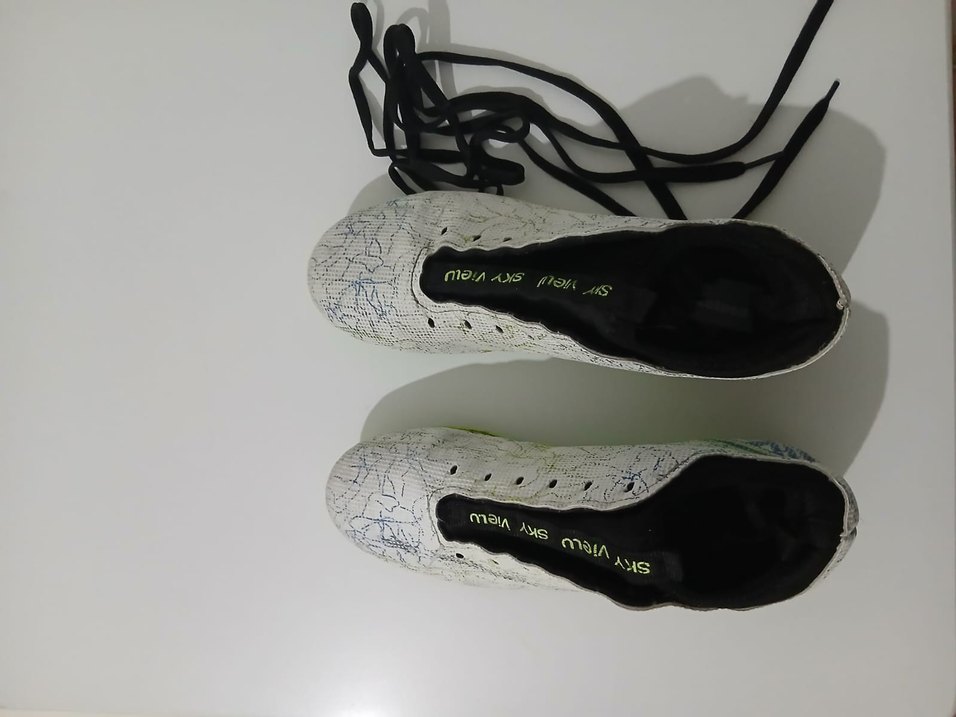 Beyaz baskılı kauçuk malzemeden erkek futbol ayakkabısı, koyu renk bağcıklarıyla dikkat çekici ve sportif bir tarz sunar. ⚽