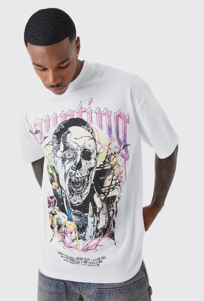 Beyaz Baskılı Erkek Oversize Tişört