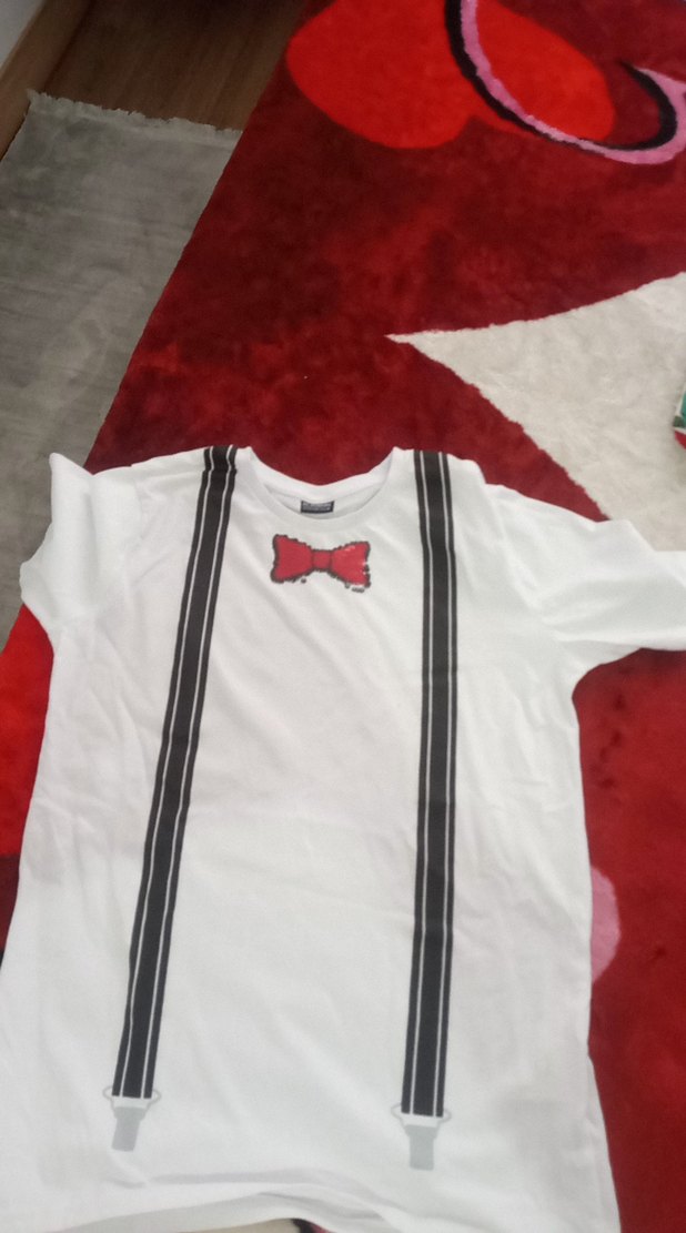 Beyaz Baskılı Erkek Papyonlu Tişört