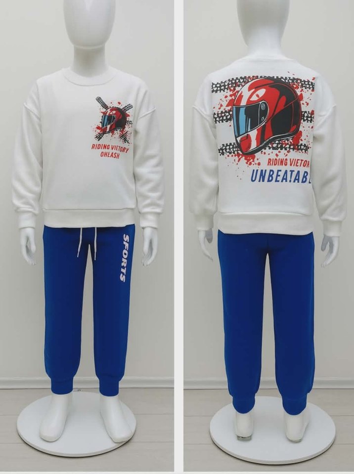 Beyaz Baskılı Erkek Sweatshirt ve Mavi Eşofman Altı