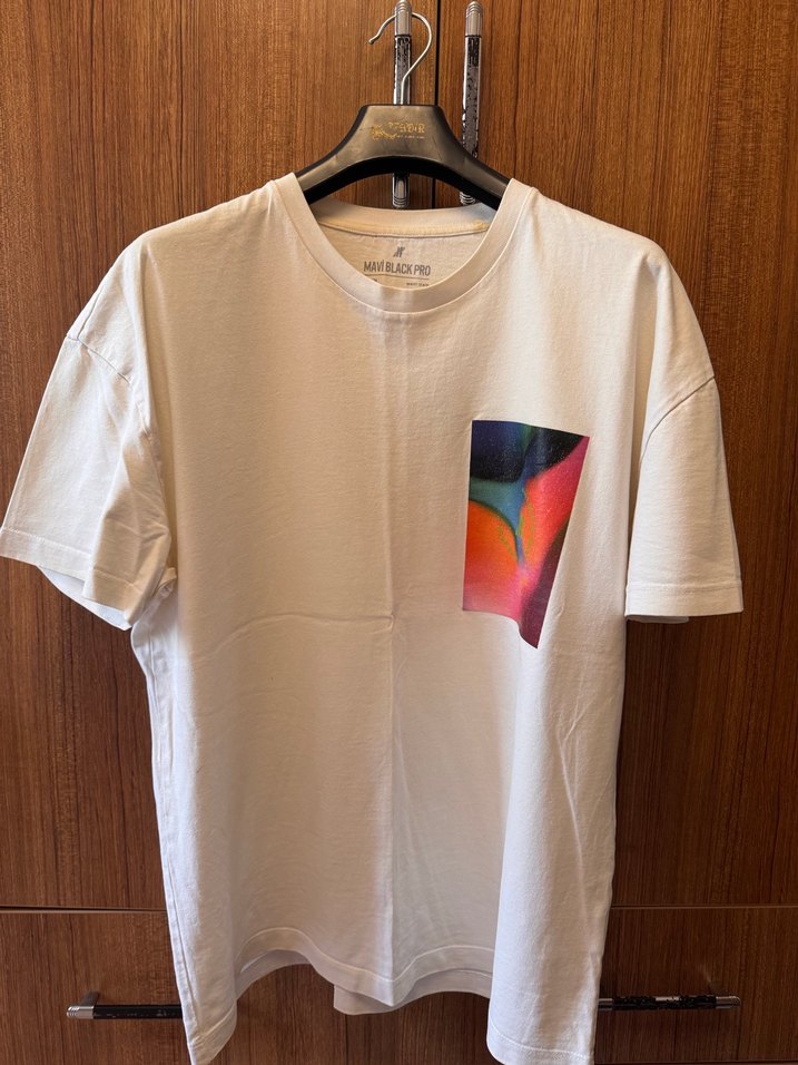 Pamuk kumaştan, beyaz renkli, baskılı cep detaylı, kısa kollu ve yuvarlak yakalı erkek tişörtü. Rahat kesimiyle gündelik kullanıma uygundur.
