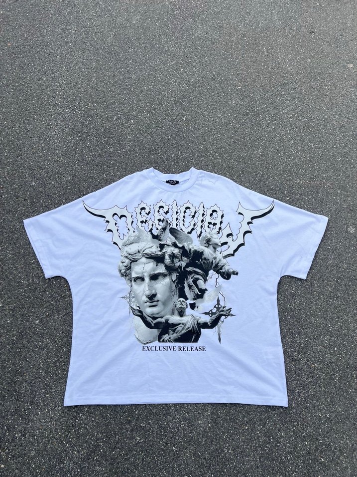 Beyaz Baskılı Erkek Tişört Loose Fit