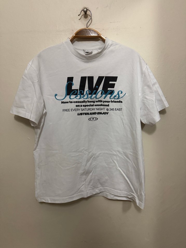 Bu beyaz erkek tişörtü, baskılı deseni, yuvarlak yaka ve kısa kollarıyla dikkat çekiyor. Yumuşak pamuktan üretilmiş olup, rahat ve bol kesimli günlük kullanım için uygundur. Pastel baskısı stil katıyor.
