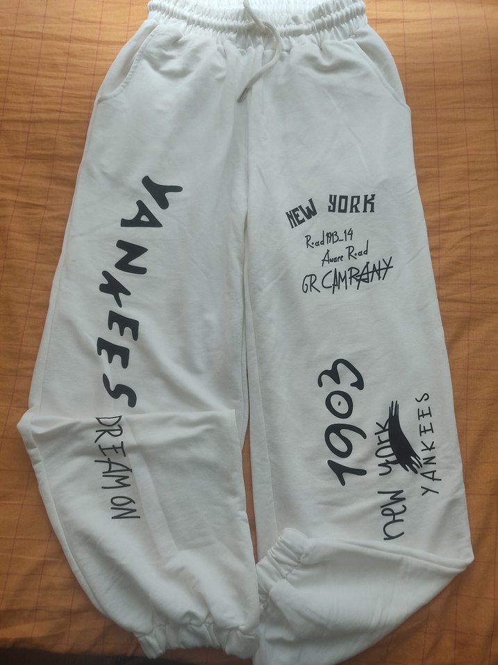 Beyaz eşofman altı, bol kesim ve cepli Elastik bilek ve bel bantlı, spor ve sokak stili için uygun. ♂️