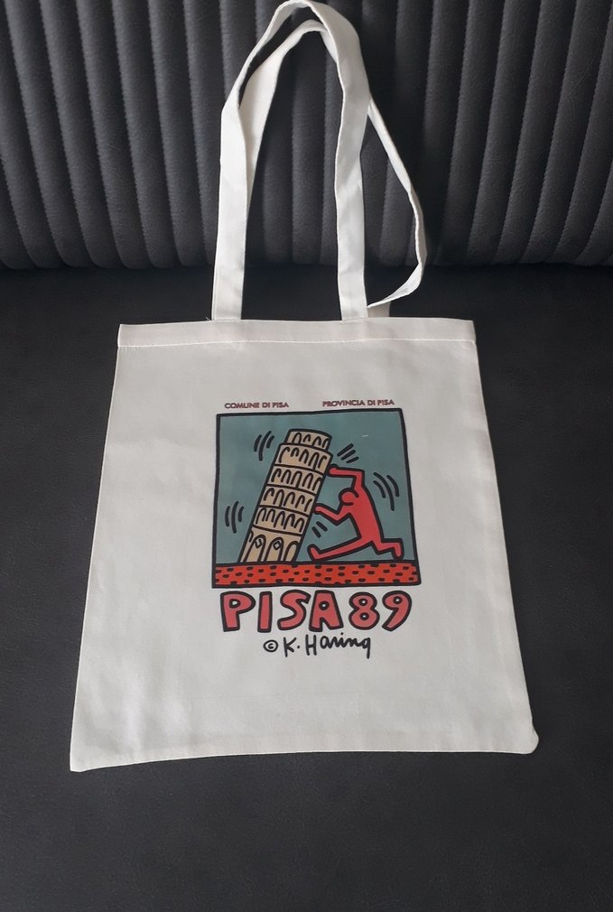 Beyaz pamuk kumaştan yapılmış, baskılı ve fermuarlı kadın omuz çantası. Sokak stilini yansıtan pastel tonlarda detaylar içerir. marka temsili