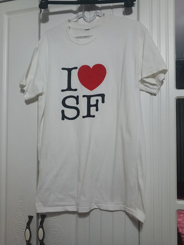 Pamuk kumaştan yapılmış, kısa kollu ve yuvarlak yakalı beyaz hamile tişörtü. Önünde 'I ❤️ SF' baskısı bulunur, rahat ve bol kesimdir. ❤️