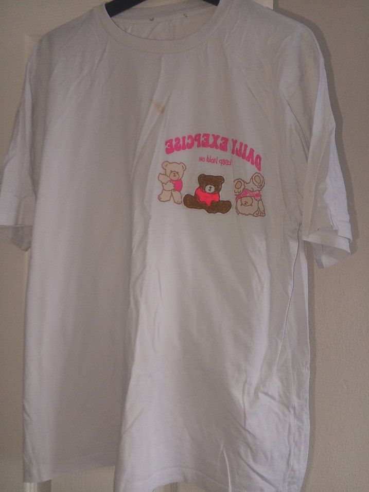 Pamuklu, kısa kollu, bol kesim beyaz hamile tişörtü, baskılı ayıcık figürlü. Rahat ve günlük stil için uygun, romantik akşamlar için ideal. önde lekesini çıkartcak olan alsın