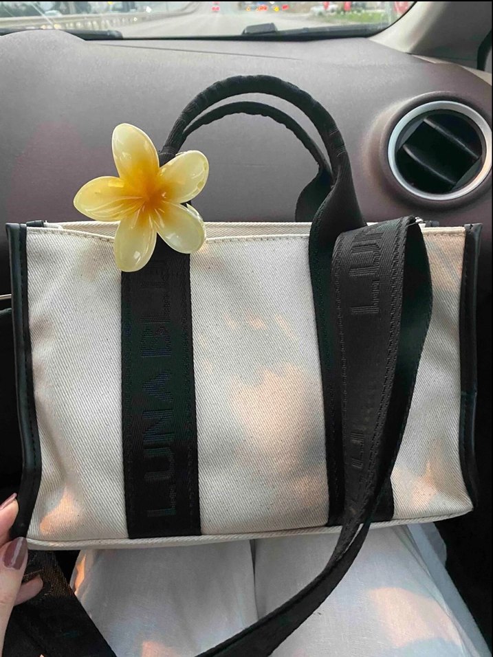 Beyaz Baskılı Kadın Kanvas Omuz Çantası