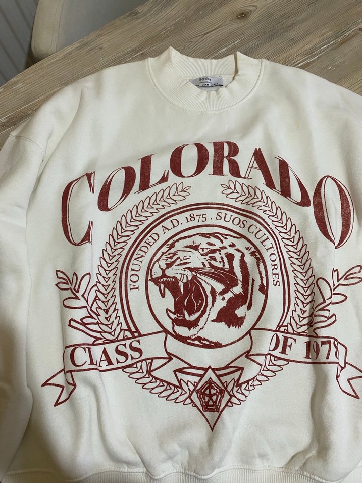 Beyaz, pamuklu, uzun kollu ve bisiklet yaka, bol kesim kadın sweatshirtü. Vintage tarzda baskılı tasarıma sahiptir. Rahat sokak stili için uygundur.