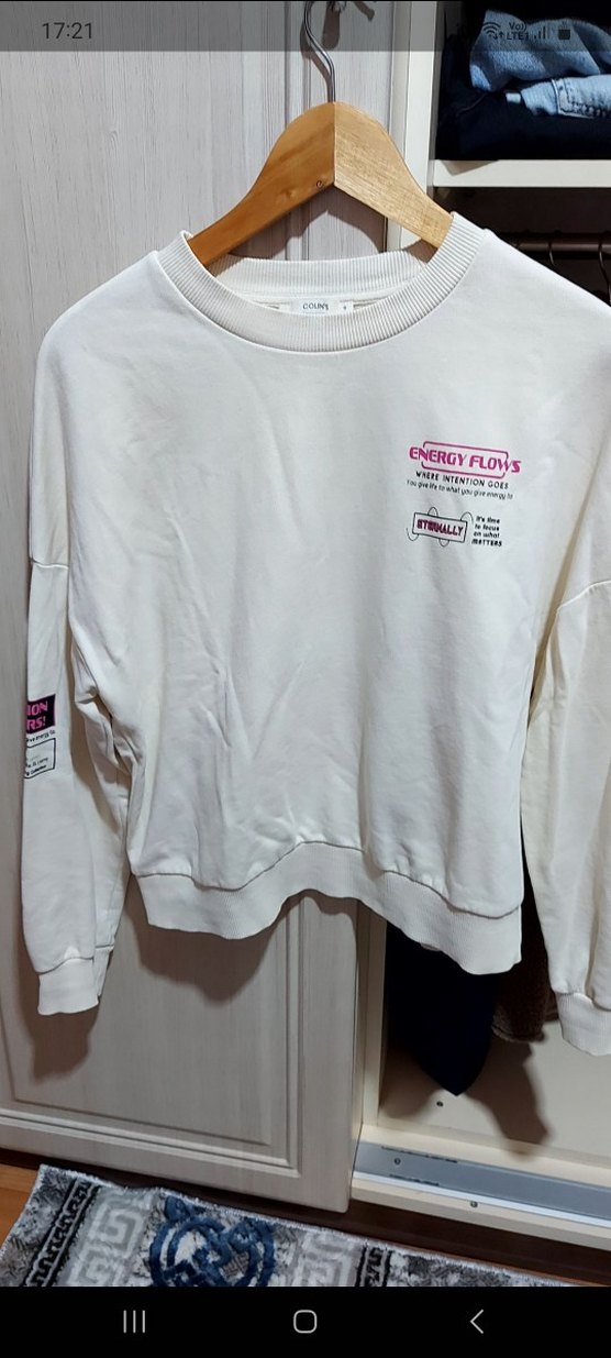 Beyaz pamuklu sweatshirt, yuvarlak yaka ve uzun kolludur. Rahat kesimi ve baskılı tasarımıyla günlük sokak stiline uygundur. Pastel ton ve "ENERGYFLOVYS" baskısı ile şık ve rahat bir görünüm sunar.