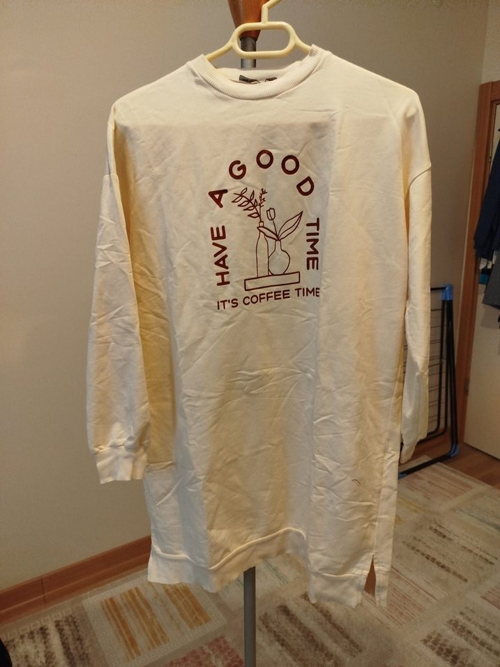 Pamuk malzemeden üretilmiş, uzun kollu, baskılı ve rahat kesim beyaz sweatshirt. Crew neck yakalı, midi boyda, günlük sokak stili için uygun. ☕