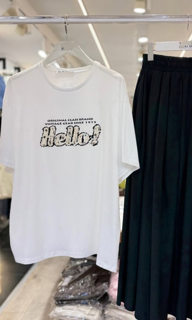 Pamuklu, kısa kollu, bol kesim beyaz tişört. Yakası yuvarlak ve baskılı, günlük sokak stili için uygun. ✨ pamuklu enfes tshirt herkesin dolabinda olmali SML bedenleri mevcuttur ve sadece 500₺