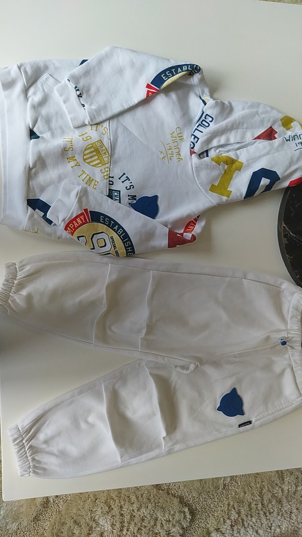 Beyaz Baskılı Kapüşonlu Erkek Eşofman Takımı