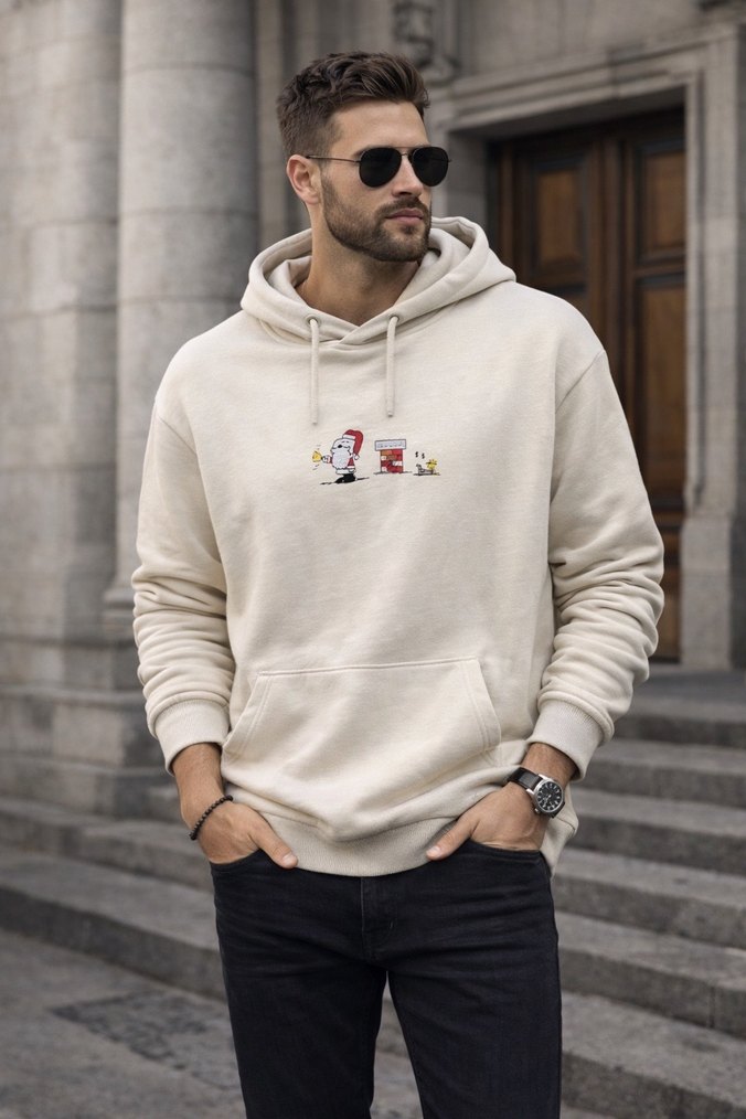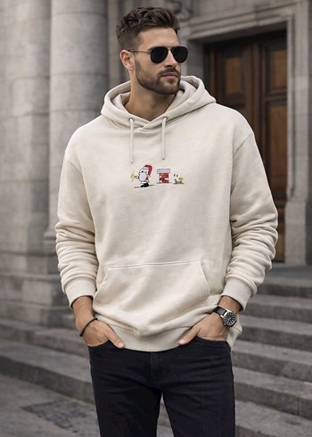 Erkekler için, rahat kesim, uzun kollu, yuvarlak yakalı, yumuşak ve sıcak kumaştan beyaz baskılı sweatshirt. Önde kanguru cepli, günlük sokak stiline uygun. #defacto #koton