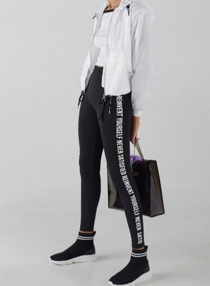 Beyaz renkli, baskılı ve kemerli midi uzunlukta, sentetik kumaştan yapılmış, vücuda oturan tayt. Günlük kullanım için uygun, sokak modasına uygun stil.