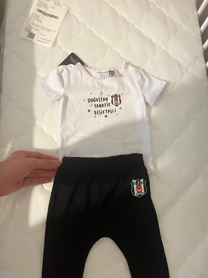 Pamuklu kumaştan, baskılı Beşiktaşlı tasarıma sahip, kısa kollu, kısa boy.