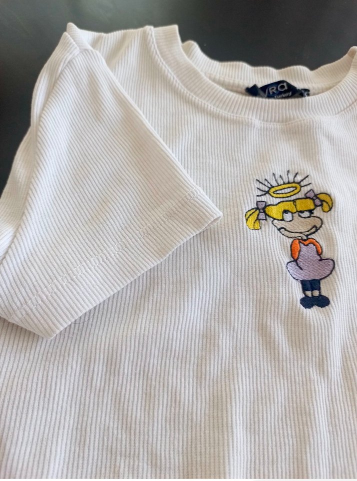 Beyaz Baskılı Kısa Kollu crop
