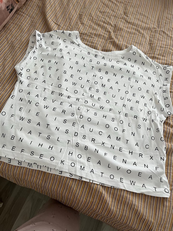 Yumuşak keten kumaştan, baskılı desenli, kısa kollu ve kayık yaka, bol kesim hamile bluzu. Rahat ev kullanımı için uygun, normal boyda.