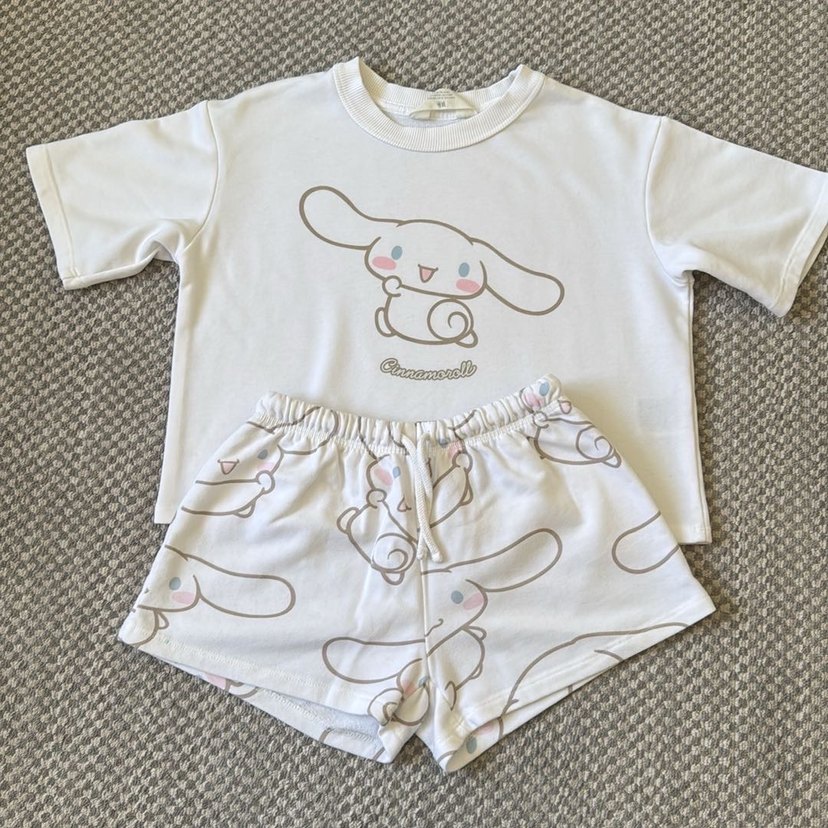 Beyaz, baskılı, kısa kollu, yuvarlak yaka, bol kesim hamile pijama takımı. Şortlar lastikli bel bandıyla rahatlık sağlar. Pastel renklerde desenlidir.