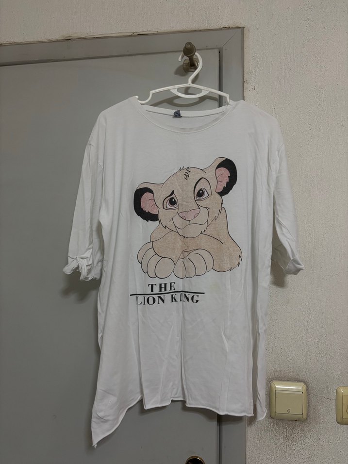 Beyaz renkli, kısa kollu, rahat kesim hamile tişörtü. Önünde The Lion King baskısı bulunur. Pamuklu, günlük kullanıma uygun.