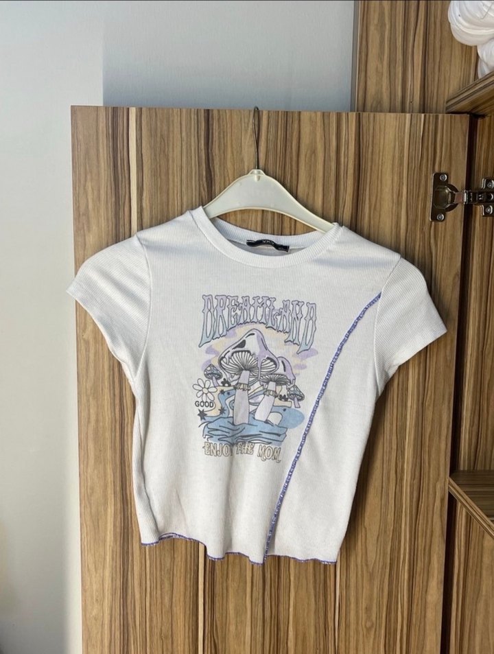 Beyaz Baskılı Kısa Kollu Kadın Tişört
