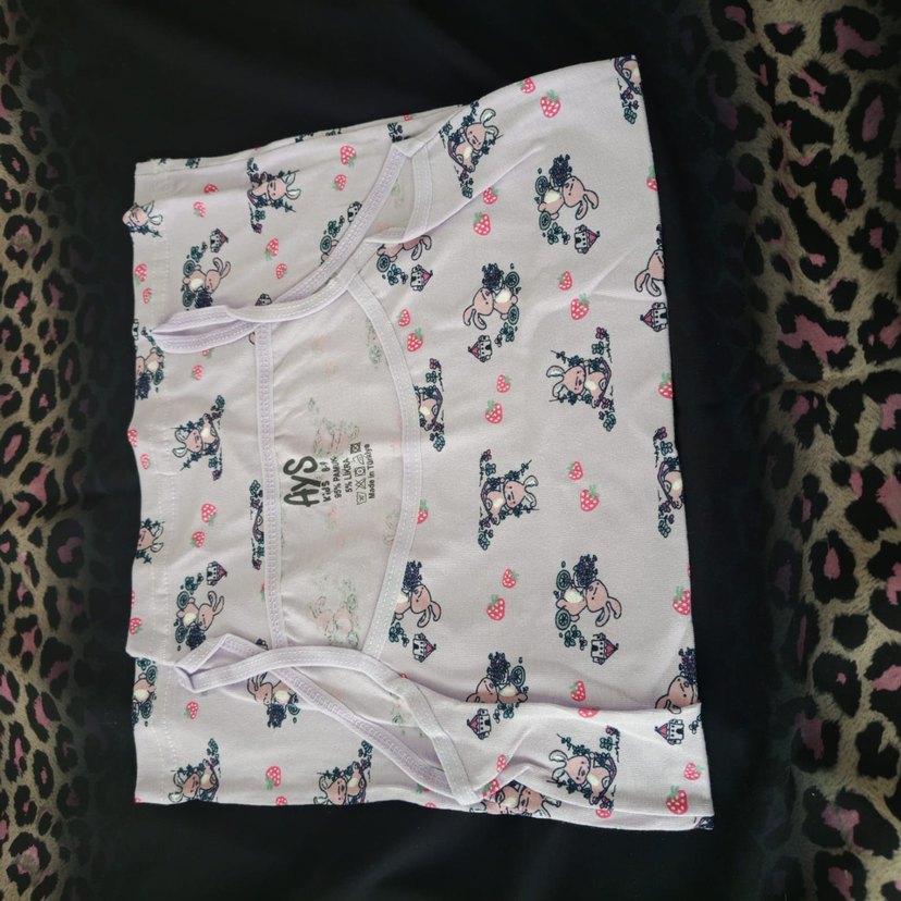 Yumuşak sentetik kumaştan, baskılı pastel desenli, askısız ve bol kesim kız çocuk yeleği.