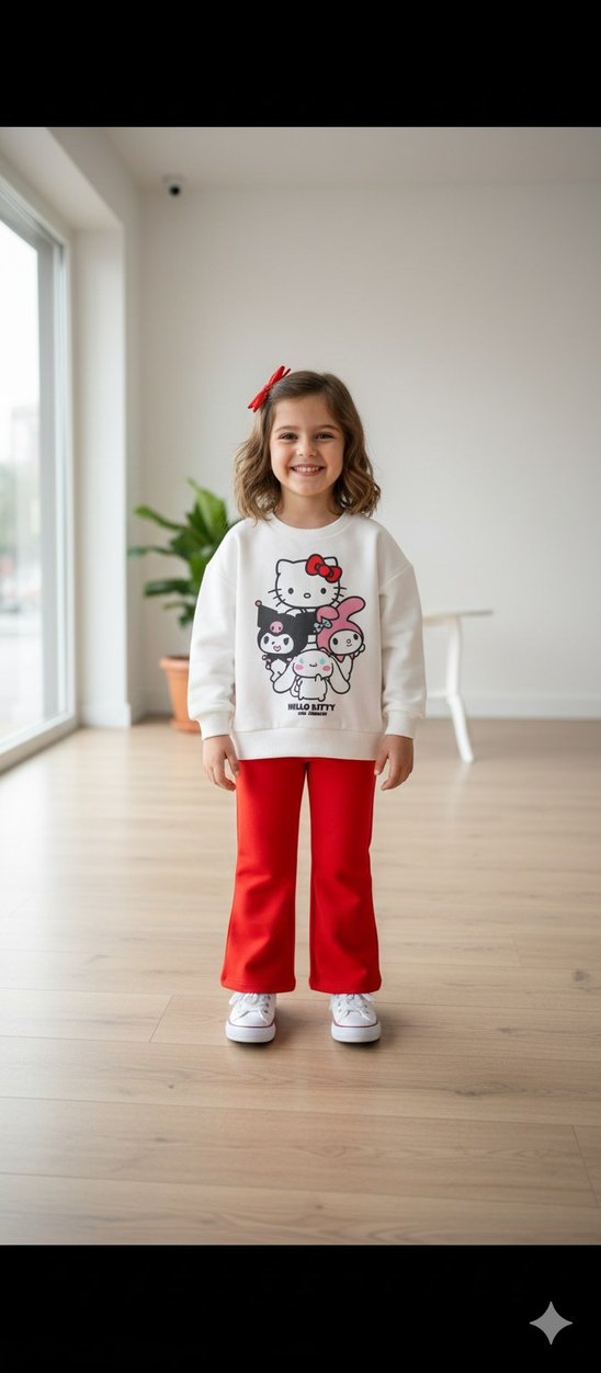 Beyaz renkli, baskılı Hello Kitty desenli, uzun kollu ve bisiklet yaka kız sweatshirtü. Rahat kesimli, yumuşak örme kumaştan üretilmiştir. 2.3 yaş 7.8 yaş arası