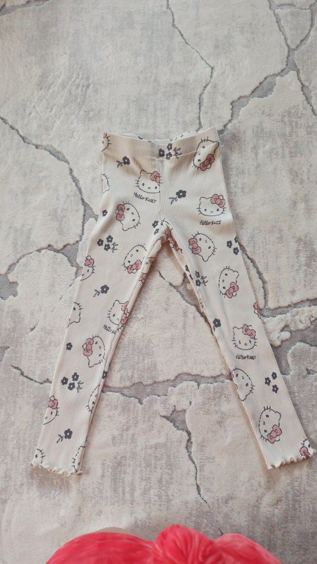 Pastel beyaz renkte, baskılı Hello Kitty desenli kız taytı. Yumuşak sentetik kumaştan, elastik bel bandıyla rahat ve şık bir sokak stili sunar.