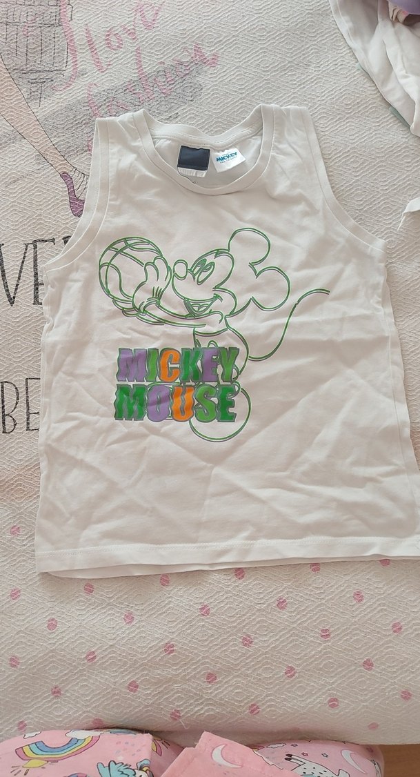 Beyaz Baskılı Mickey Mouse kız çocuk tisort