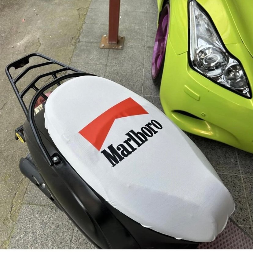 Beyaz, renkli baskılı motosiklet koltuk kılıfı