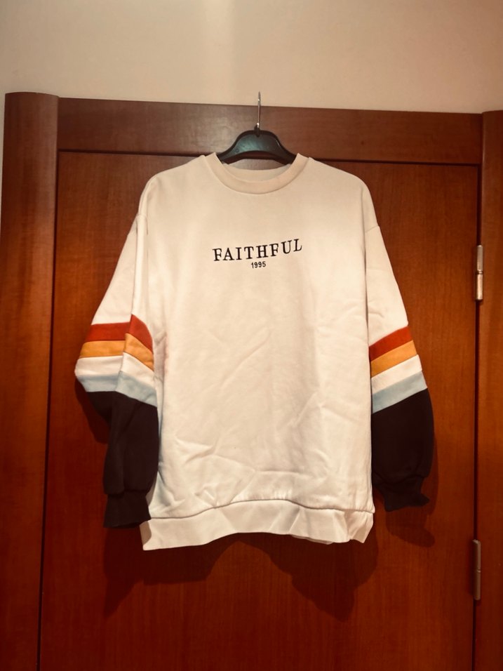 Beyaz renk, baskılı ve örgü detaylı bu sweatshirt, yuvarlak yaka ve uzun kolludur. Rahat kesimi ve yumuşak kumaşıyla günlük kullanıma uygundur. ✨