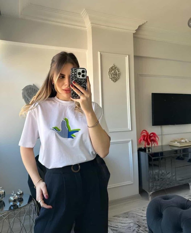 Beyaz Baskılı Oversize Kadın Tişört