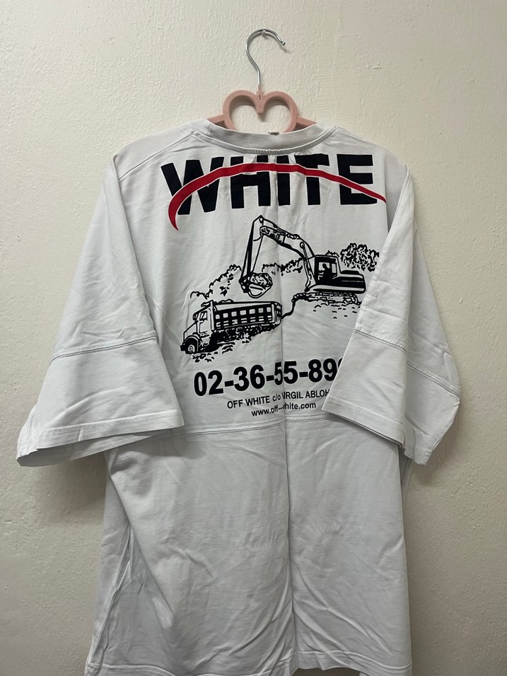 Pamuk beyaz tişört, oversize kesim, bisiklet yaka ve kısa kolludur. Gri tonlarda baskılı sokak stili tasarım ve '02-36-55-89' yazısı içerir. Trendy casual dış mekan için uygundur.