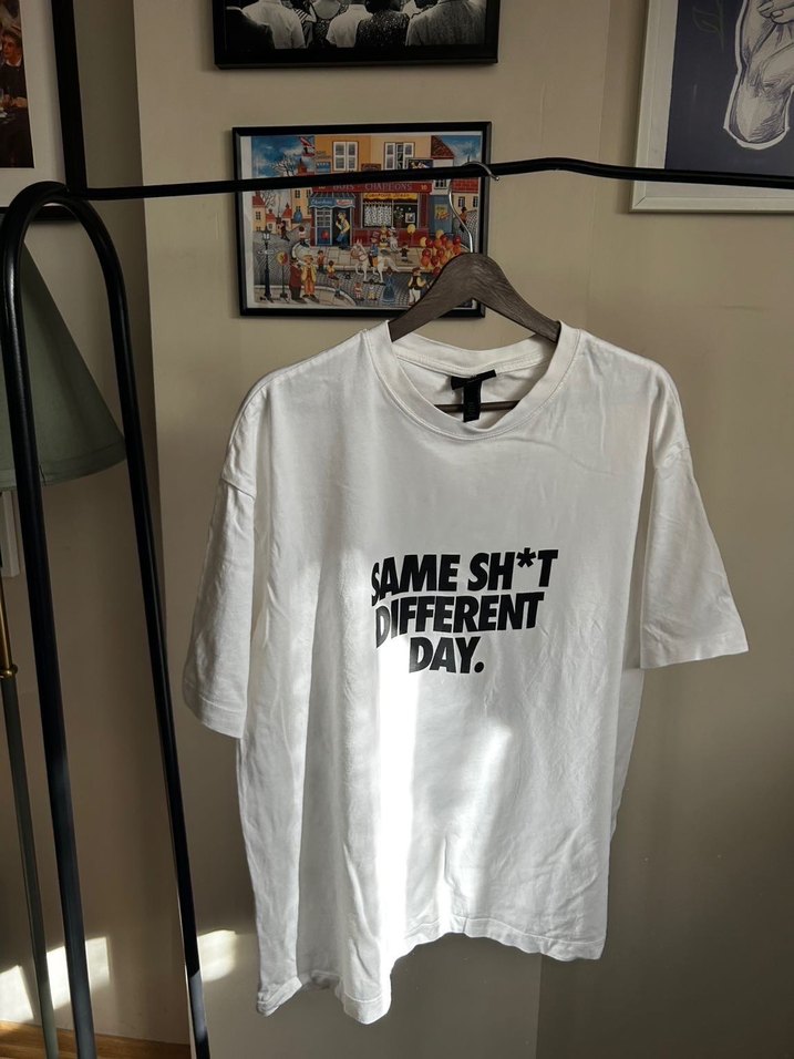 Beyaz Baskılı Oversize Tişört Same Shit Different Day