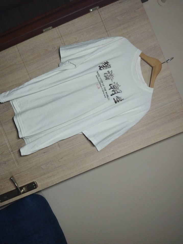 Beyaz pamuklu erkek tişört, kısa kollu ve yuvarlak yaka. Baskılı desenli, rahat kesim ve günlük kullanım için uygundur. beyaz t-shirt arkasında baskı var baskılar silik renk gibi alındığı zaman da öyle idi boy 77 cm iki koltuk arası 65 cm