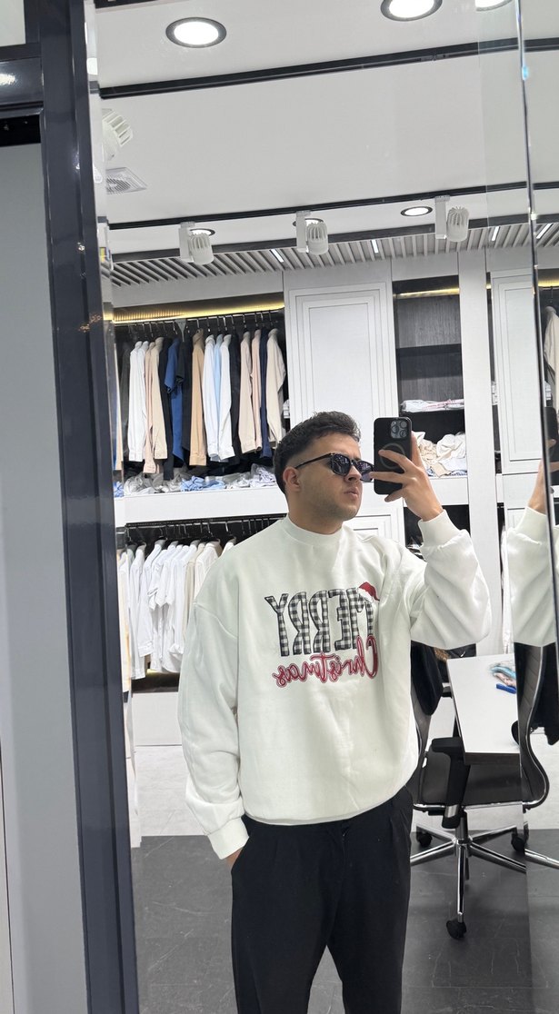 Beyaz Baskılı Rahat Kesim Sweatshirt