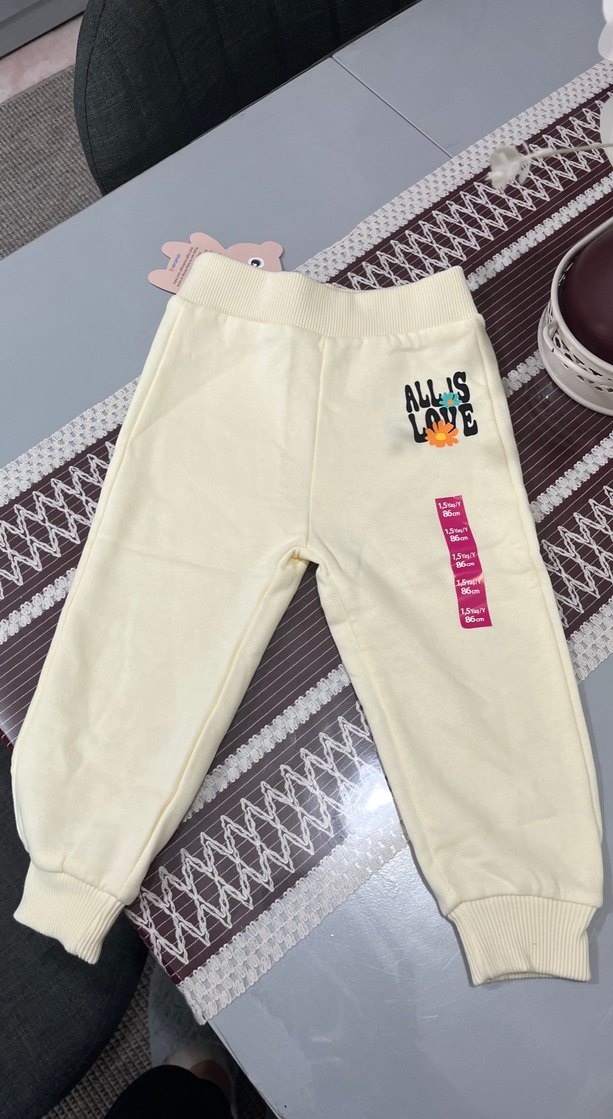Yumuşak ve sıcak kumaştan, içi polar elastik bel ve manşetli bol kesim beyaz kız çocuk eşofman altı. Renkli baskılı detaylara sahip, rahat kullanım sağlar.