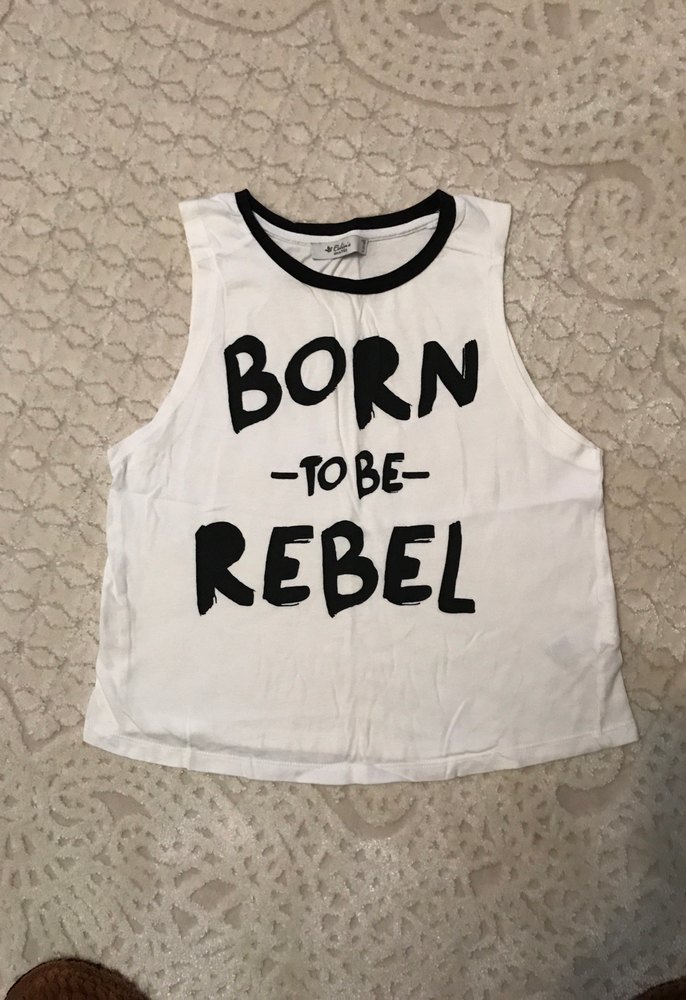 Pamuk kumaştan beyaz, baskılı, askısız, salaş kesim Rock Punk kadın atlet. "BORN -TOBE- REBEL" yazılı, günlük kullanıma uygun rahat model.
