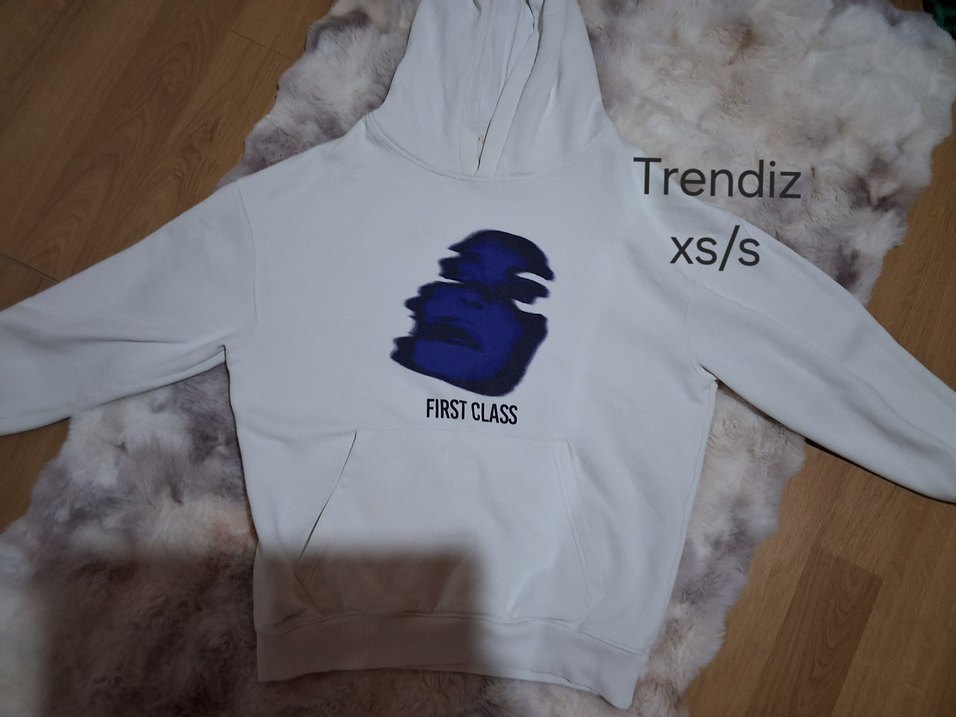 Beyaz, baskılı, uzun kollu, yuvarlak yakalı sweatshirt. Salaş kesim ve normal boyda, yumuşak ve sıcak kumaştan üretilmiştir.