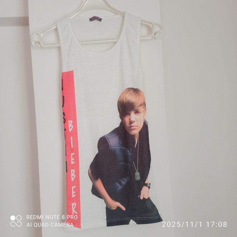 Beyaz renkli, dar kesimli yuvarlak yakalı ve sıfır kolludur. Sentetik kumaştan yapılmış, baskılı deseni ile rahat ve şık bir sokak stili sunar.