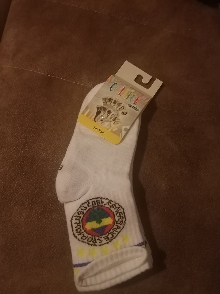 Yumuşak ve sıcak kumaştan yapılmış, renkli baskılı beyaz takım çorabı.